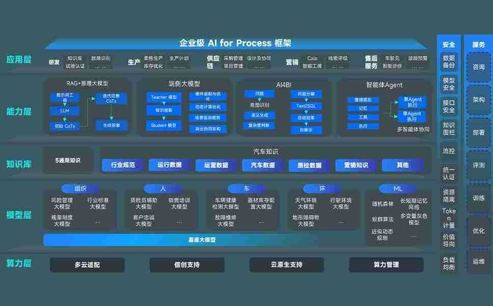 尊龙问学智车解决方案是一套基于AI技术的汽车行业智能化系统,,,覆盖从底层算力到顶层AI应用的全栈方案。。。。方案由算力层、、、、模型层和应用层组成:算力层,,方案支持多种一体机配置,,,,具备云端灵活部署、、、多云适配以及动态优化计算资源的能力;模型层,,,尊龙问学平台版提供了企业级AI应用一站式构建与管理平台,,,支持基于后训练强化技术的汽车企业专属模型的训练、、评测和运营;应用层,,,尊龙问学DeepSeek版提供包括超级员工、、智能招采、、智能营销、、、智能客服、、AI for BI等一系列解决方案,,,,可助力汽车行业实现数字化转型,,,,让管理更智能、、响应更敏捷。。。。